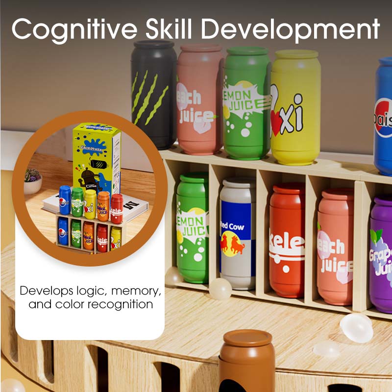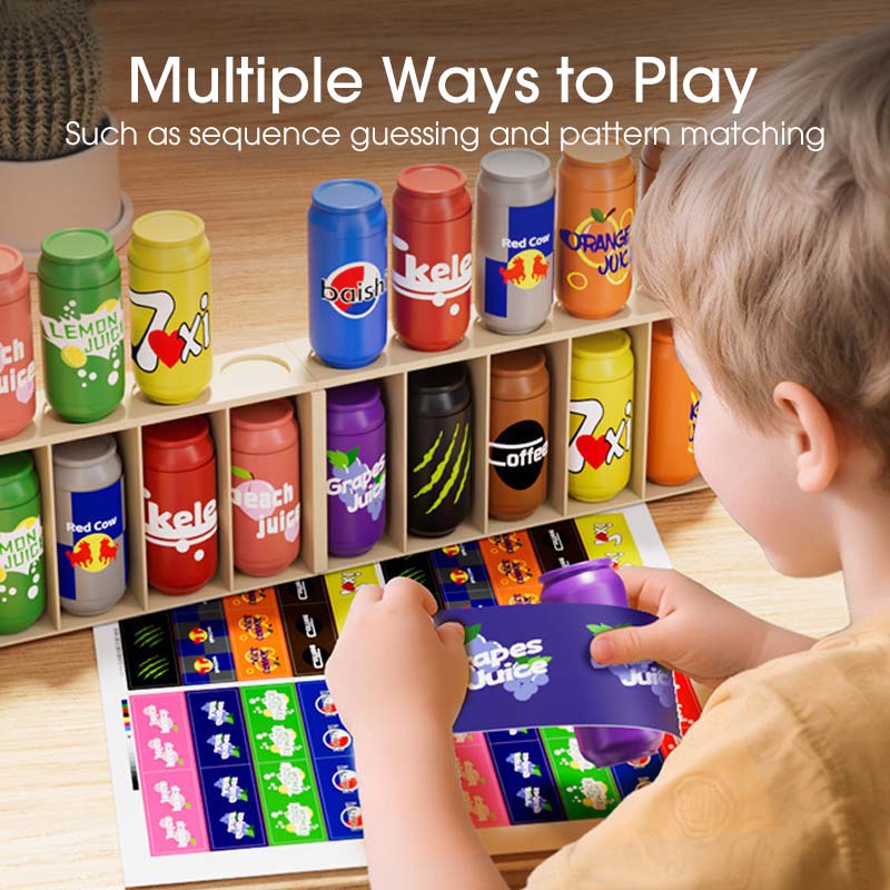 ÉLÉNK ÉS LEBILINCSELLŐ MEGJELENÉS: Színes, miniatűr italdobozokkal rendelkezik, amelyek vizuálisan vonzóak a gyermekek számára. A élénk színek és szórakoztató minták hatékonyan felkeltik a figyelmüket, tanulási folyamatot élvezetessé téve és a koncentrációt segítve.