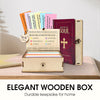 ELEGÁNS FA DOBOZ: Kiváló minőségű fából készült, sima felületű doboz, amely gyönyörűen tárolja a szentírási kártyákat, így tartós emlék és dekorációs tárgy lehet otthonában, irodájában vagy imaszobájában.